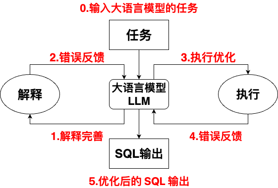 获得精简模式后,TiSQL利用CoT提示引导LLM生成SQL。为解决LLM生成中可能出现的错误,TiSQL引入了创新的自优化链(Self-Refinement Chain)机制。