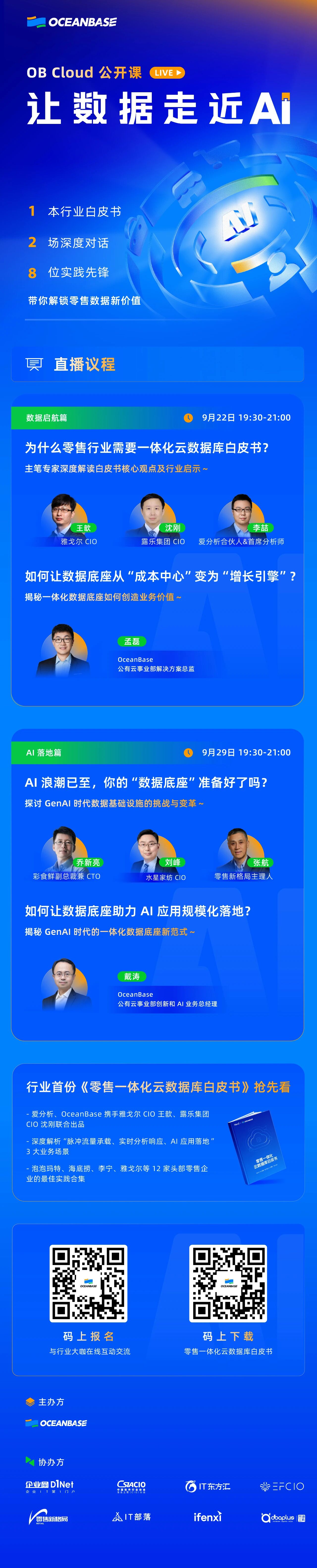9 月 22 日、9 月 29 日, “让数据走进 AI ” OB Cloud 公开课,只待你来!