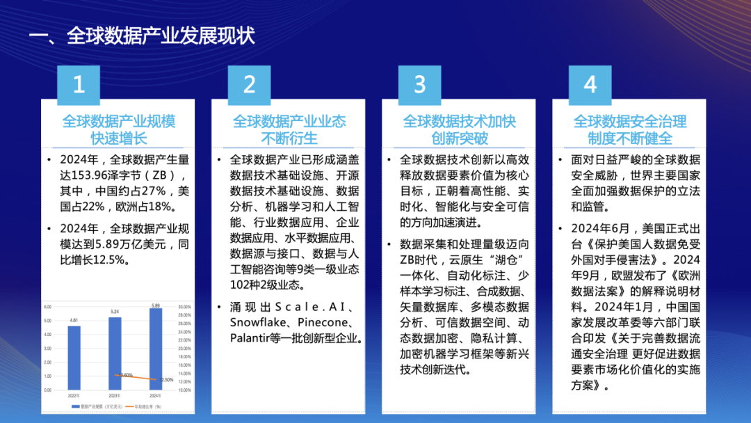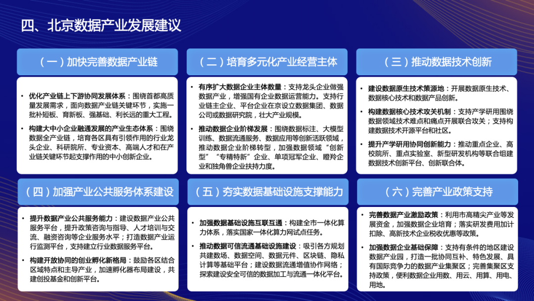 本次《报告》的整体内容共划分为了四个板块,分别对全球和我国数据产业发展、以及北京数据产业现状进行了系统性的全面阐述。其主要内容如下:
