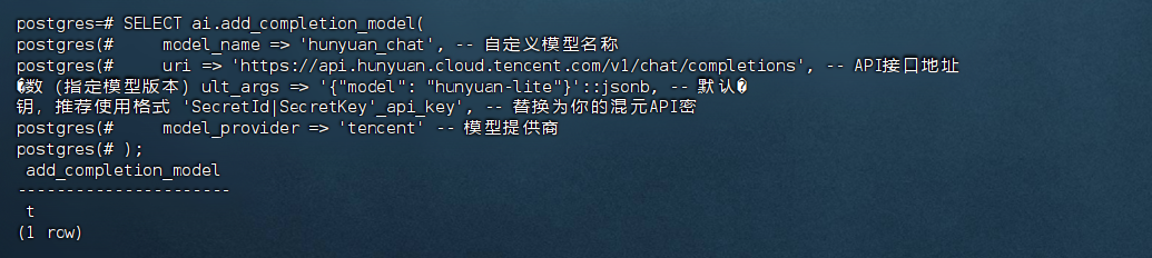 default_args => '{"model": "hunyuan-lite"}'::jsonb, -- 默认参数(指定模型版本)