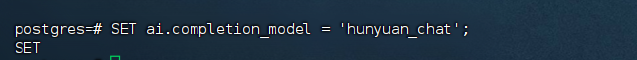 3. 若后续希望默认使用混元模型,可通过 SET 命令配置会话级参数,配置混元大模型为默认模型。