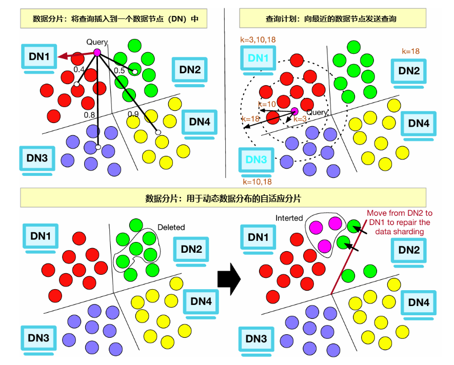 · 自适应重分布:为了应对数据分布随时间变化可能导致的负载不均,系统包含一个周期性的、增量的重分布机制。它能自动检测数据分布的“漂移”,并在后台更新簇中心并迁移数据,以维持长期的负载均衡。