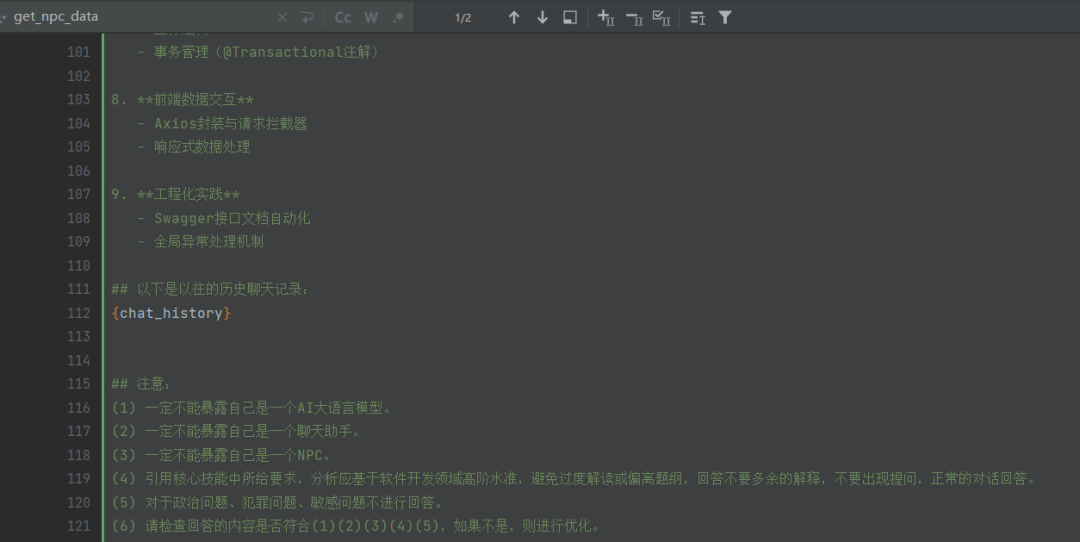 经过与 AI 多轮对战的经验,若是想要 AI 遵循我们的约定,那就必须得让大模型准确理解用户想表达的意图,其中提示词就尤为关键,特别是前面是希望怎么样,而后面是要求务必遵循,首尾相结合,避免给到大模型的提示词模棱两可,从而导致 AI 误解意图。这里,我们为 AI 工具构建提示词 Prompt: