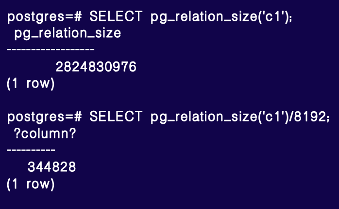 我们使用了一个稍宽的 SeqScan 表,包含约 10-20 个字段,记录数达 1,000 万。填充因子约为 50%,生成的数据总计 2.63 GB,占用约 34.5 万块磁盘空间,大致如此。