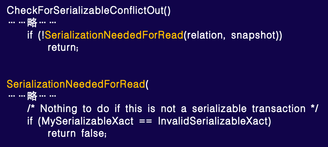 我们通过英特尔 VTune 等性能分析工具深入分析这段代码,发现部分开销无必要。常规情况下的 HeapTupleSatisfiesVisibility 检查(标红部分)以及底部的序列化冲突检查 HeapCheckForSerializableConflictOut(标黄部分),在 all_visible 为真时,多余且耗时。标红的两个条件判断及后续函数调用(如序列化事务检查),在默认或一般场景下几乎不使用,因此开销可忽略。