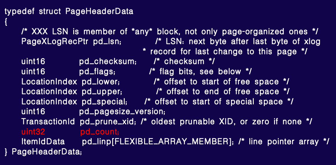 因此,我们采用了一个相对简单的方法,在页面头部新增了一个字段,并在设置 pd_upper 时计算其值。
