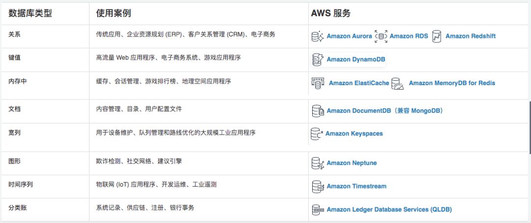 亚马逊云数据库服务全景,来源:亚马逊云科技