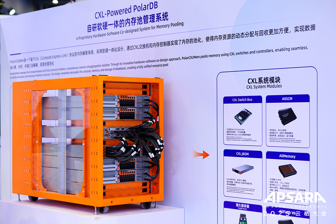 9月24日2025云栖大会上,阿里云智能集团资深副总裁、数据库产品事业部负责人李飞飞发表题为《瑶池数据库:多模态AI数据底座,智能数据管理平台》主题演讲。他表示:“数据与AI大模型的开放融合是大势所趋。面向Agentic AI时代,阿里云瑶池数据库正加速迈向新阶段——从云原生数据底座向“AI就绪”的多模态数据底座全面演进。” 这一战略性升级聚焦3大核心路径:持续增强云原生能力、全面提升多模态数据管理能力、深化数据库与大模型的融合能力,旨在为用户提供更智能的数据管理平台,高效整合数据与AI,释放数据深层价值。今年2月,阿里云瑶池旗下的云原生数据库PolarDB以每分钟20.55亿笔交易(tpmC)和0.8元人民币/tpmC的成绩,登顶TPC-C基准测试的性能和性价比排行榜,刷新了双榜世界纪录。该记录标志着PolarDB创新的云原生架构、软硬件结合的方式,在性能、可扩展性等多个维度均处于全球领跑者行列。技术的进步永无止境,继赢得TPC-C双冠殊荣后,PolarDB再度实现关键突破。会上,阿里云宣布推出全球首款基于CXL(Compute Express Link)2.0 Switch技术的PolarDB数据库专用服务器。在原有RDMA网络的基础上,PolarDB引入CXL高速互连技术,突破云原生数据库内存与性能上限。PolarDB基于CXL的分布式内存池解决方案,可实现和本地一样低延迟、高带宽的远程内存访问,延迟可低至百纳秒级,带宽吞吐达到数TB/s,实现内存资源“池化可共享、按需可调度”。本次发布的 PolarDB 数据库专用服务器,搭载全球首款面向数据库负载优化、支持 CXL 2.0 协议的商用交换设备,重新定义了云原生数据库硬件底座。它不仅支持多主机并发访问共享内存池,并首次在数据库场景中实现“交换能力”(Switching),使系统拓扑可自由扩展、灵活组网。未来,随着CXL Switch的演进,系统还将支持多级交换架构、动态容量设备及Fabric拓扑设计,进一步强化异构计算能力与横向扩展性,为超大规模云数据库提供坚实的技术底座。