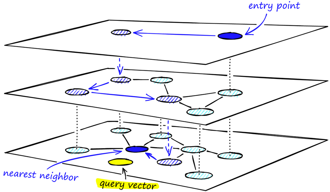 | Graph Index | 基于图的近邻搜索(构建小世界图,贪心+多层跳跃搜索) | 高(需存储邻居关系) | 很快(log 级搜索复杂度) | 高 | 高频查询、低延迟场景 | 查询速度极快,但索引构建成本高 |