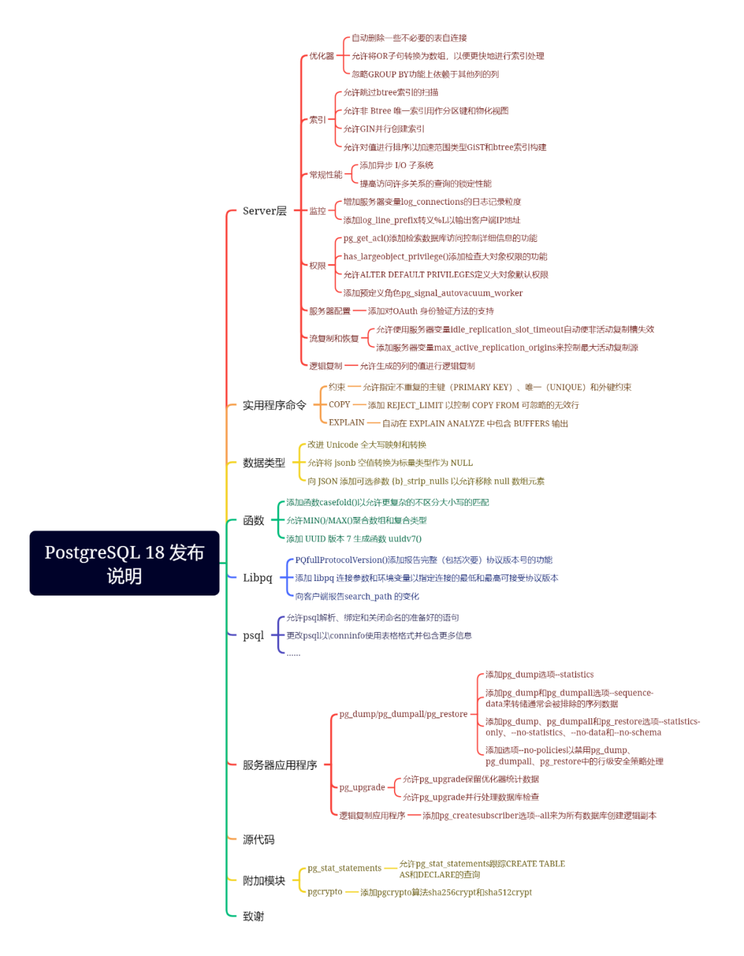 以下部分将更详细地解释上述项目以及PostgreSQL 18 的其他新功能。