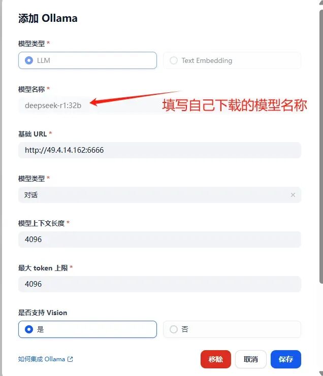 确保 Dify 与 Ollama 服务器网络互通。 若集成失败,检查 Ollama 日志:tail -f usr/local/bin/ollama/logs/server.log。