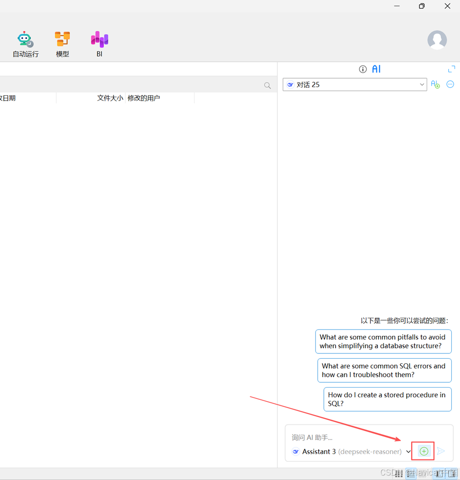 添加完助手后,在信息窗格中点击添加 AI 对话图标,新建一个 AI 对话。