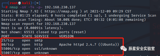 Nmap -sS -sV -T5 -A -p- 192.168.230.137
