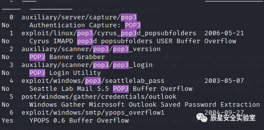 这里msf给了我们6个模块,我们选着2端口服务查询模块