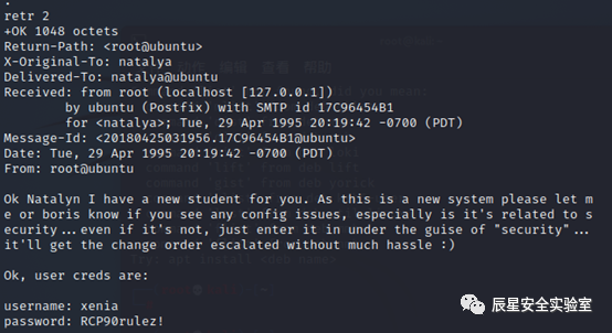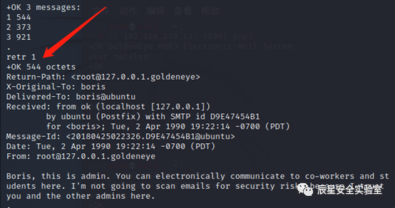 Nc登录pop3,用爆破出来的账号密码进行登录获得三封邮件