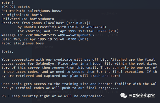 你与我们辛迪加的合作将获得巨大的回报。附件是GoldenEye的最终访问代码。将它们放置在此服务器根目录中的隐藏文件中,然后从此电子邮件中删除。这些访问代码只能有一组,我们需要为最终执行保护它们。如果他们被抓获,我们的计划就会崩溃!