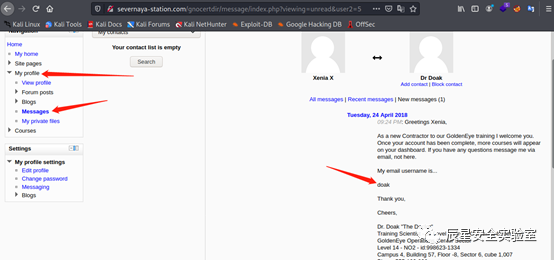 在doak邮件里发现另一个登录的账号密码,利用获得账号密码登录学习系统收集信息