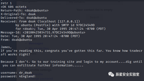 在账户的messages找到了一封邮件获得一个用户doak用户