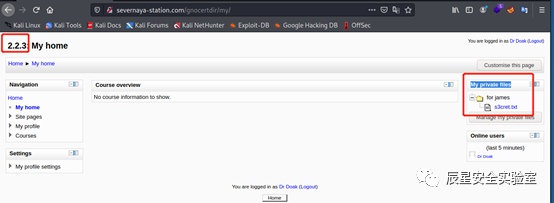 我看到messages信息是和管理员有联系的,这个moodle系统版本是2.2.3,在Myprivate files文件下有一个下载文件