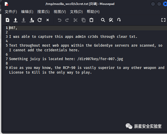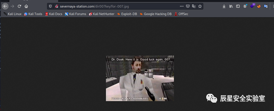 现在我们查看文件的内容,指出管理员凭据已隐藏在映像文件中,让我们在浏览器中打开图像以查看其内容。可以使用浏览器下载,也可以使用命令:wget http://severnaya-station.com/dir007key/for-007.jpg下载到本地。根据邮件提示让我们检查图片内容,下载图片后,我们可以使用binwalk(路由逆向分析工具)、exiftool(图虫)、strings(识别动态库版本指令)等查看jpg文件底层内容。