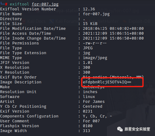 用exiftool和strings解析得到Image Description : eFdpbnRlcjE5OTV4IQ== 显示的是base-64编码的字符串(两个等号表示它是base-64编码的字符串)。基数为64的编码字符串如下所示: