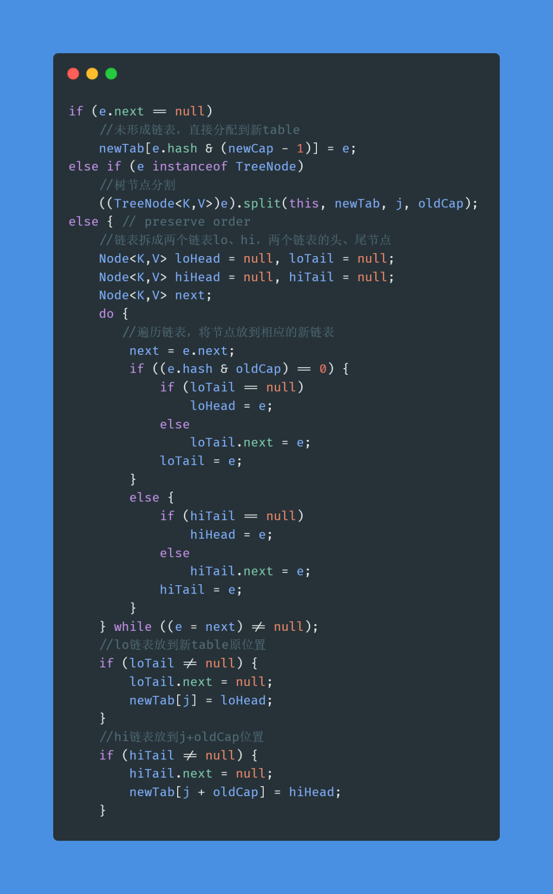 treeifyBin(tab, hash);最后所有元素处理完成后,判断是否超过阈值;