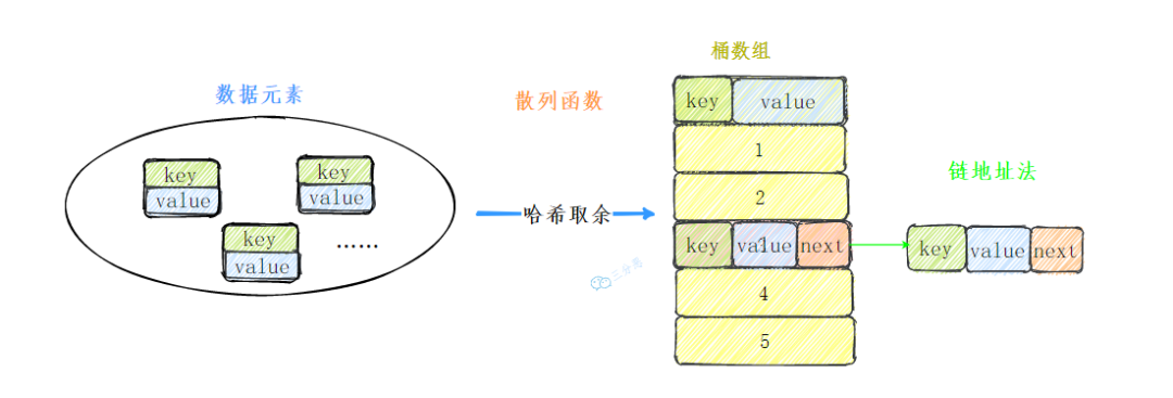 其中,桶数组是用来存储数据元素,链表是用来解决冲突,红黑树是为了提高查询的效率。