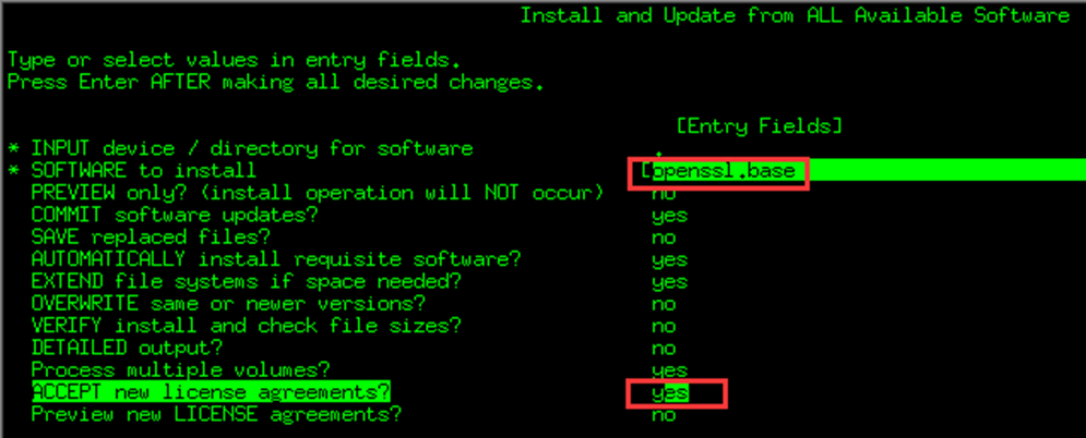 "ACCEPT new license agreements?" [yes]