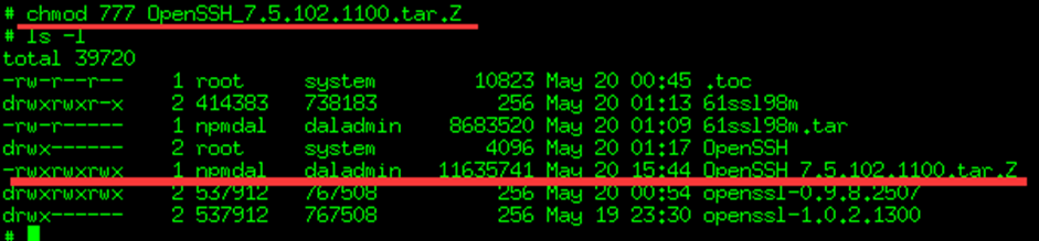上传 openssh文件包后,如果所有者不是root,需要修改权限