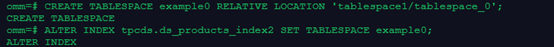 ALTER INDEX tpcds.ds_products_index2 SET TABLESPACE example0;
