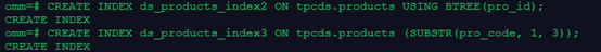 CREATE INDEX ds_products_index3 ON tpcds.products (SUBSTR(pro_code, 1, 3));