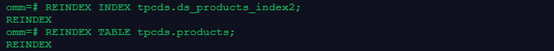 --重建索引2REINDEX INDEX tpcds.ds_products_index2;