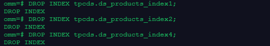 DROP INDEX tpcds.ds_products_index1;DROP INDEX tpcds.ds_products_index2;