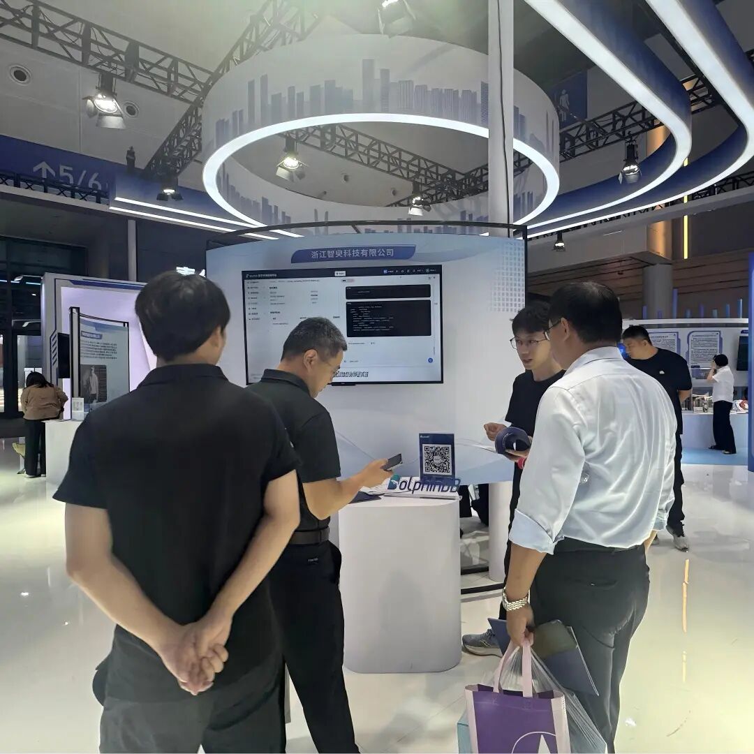 2025年9月25日,第四届全球数字贸易博览会(以下简称“数贸会”)在杭州盛大启幕。本届数贸会以“在数贸会看见创新未来”为主题,吸引了154个国家和地区的1800多家企业参展,规模再创新高。为期5天的展会期间还将举办机器人创新大赛、电子音乐节等系列活动,全球数贸星座、智能陪伴机器人等百余项中国首发、亚洲首秀、全球首展的最新技术和产品也将在数贸会期间集中发布。作为全球唯一以数字贸易为主题的国家级、国际性、专业型展会,数贸会吸引了全球目光。本次数贸会共设置“1+7”展区:1个数贸主题展馆和人工智能、丝路电商、数智出行、数字文娱、数字医疗、智慧空间、智慧物流等7个特色产业展区。DolphinDB 作为时序数据治理领军企业,与 DeepSeek、宇树科技等人工智能领域代表企业一同亮相「人工智能馆」,彰显 AI 时代大数据基础软件的技术硬实力。