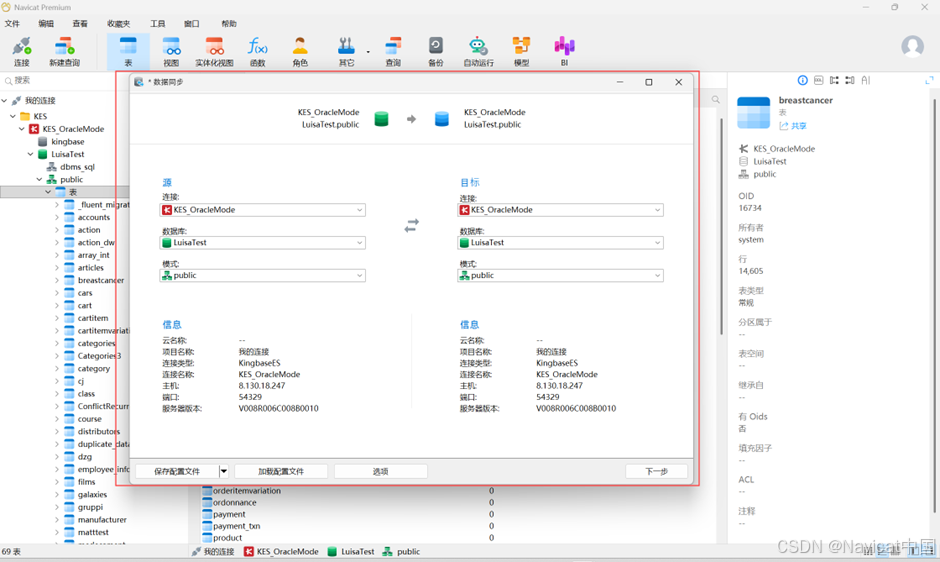 近期,Navicat 宣布正式支持国产金仓 Kingbase ES 数据库,并提供全方位管理与开解决方案。Navicat 旗下全能工具 Navicat Premium 支持金仓 KingbaseES 全面的管理开发功能,而轻量化免费的 Navicat Premium Lite 则满足小型和独立开发者的基础需求。Navicat Cloud 和 Navicat On-Prem Server 为需要文件管理和内部协作的组织提供支持。值得注意的是,Navicat On-Prem Server 3.0 版本起,已能管理金仓数据库中的关键对象,如表、视图、实体化视图、过程、索引、序列、类型等。