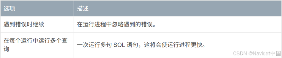 【提示】你可以拖拉一个 .sql 文件到导航窗格内已打开的连接、数据库或表。Navicat 将会自动弹出运行 SQL 文件窗口。