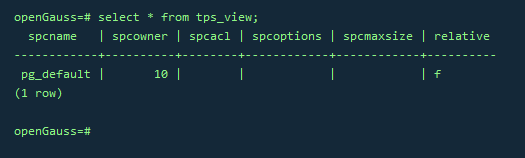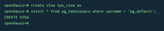 –为系统表pg_tablespace创建字段spcname为pg_default组成的视图
