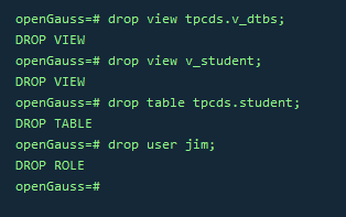 drop view tpcds.v_dtbs;drop view v_student;drop table tpcds.student;drop user jim;