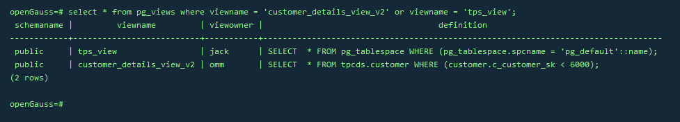 select * from pg_views where viewname = 'customer_details_view_v2' or viewname = 'tps_view';