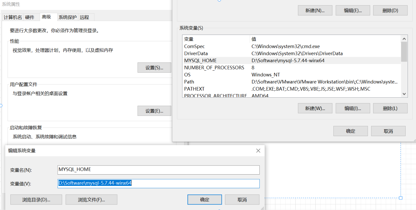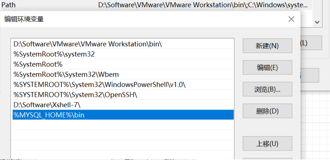 Path参数添加值D:\Software\mysql-5.7.44-winx64\bin或者用上面新增的参数变量%MYSQL_HOME%\bin