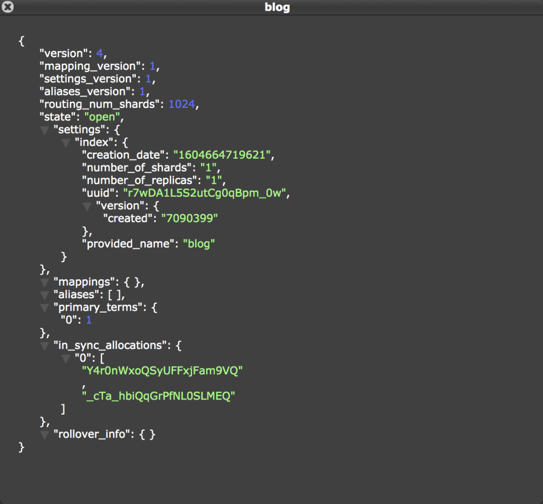 举一个简单例子,新建一个索引,然后查看索引信息: