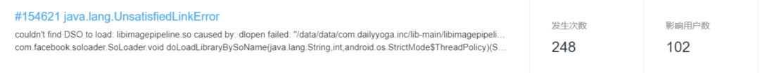 根据异常分析报错的原因是so库加载失败,CPU架构找不到对应的so文件,通过bugly异常分析中看到:so文件加载失败后,Fresco调用了libimagepipeline.so文件下的SoLoader native方法,这个时候问题就来了,so文件已经加载失败了,它怎么去找内部的方法呢?自然就报错了。
