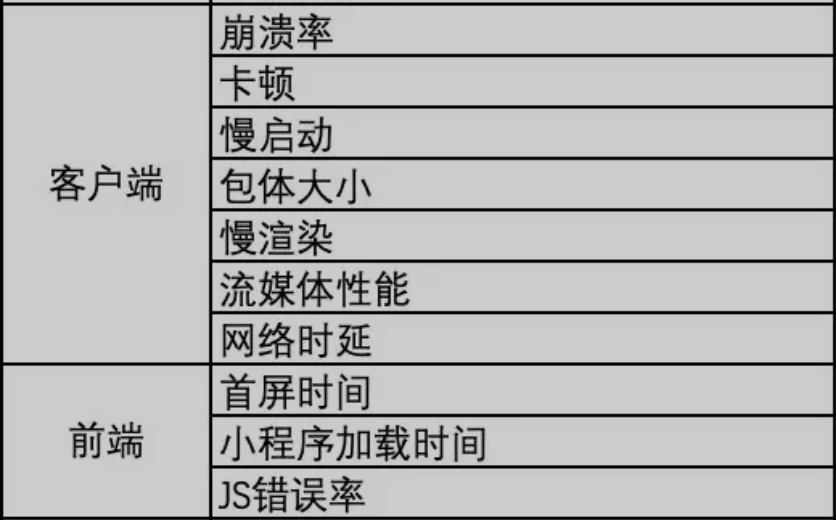 上述是服务器角度,web或移动端方法类似,可以参考《移动互联网技术质量体系的理解》。从中断和延迟看,分别有如下的方向,由于数据体量可控,因此直接抽出一些北极星指标更容易集中收敛。
