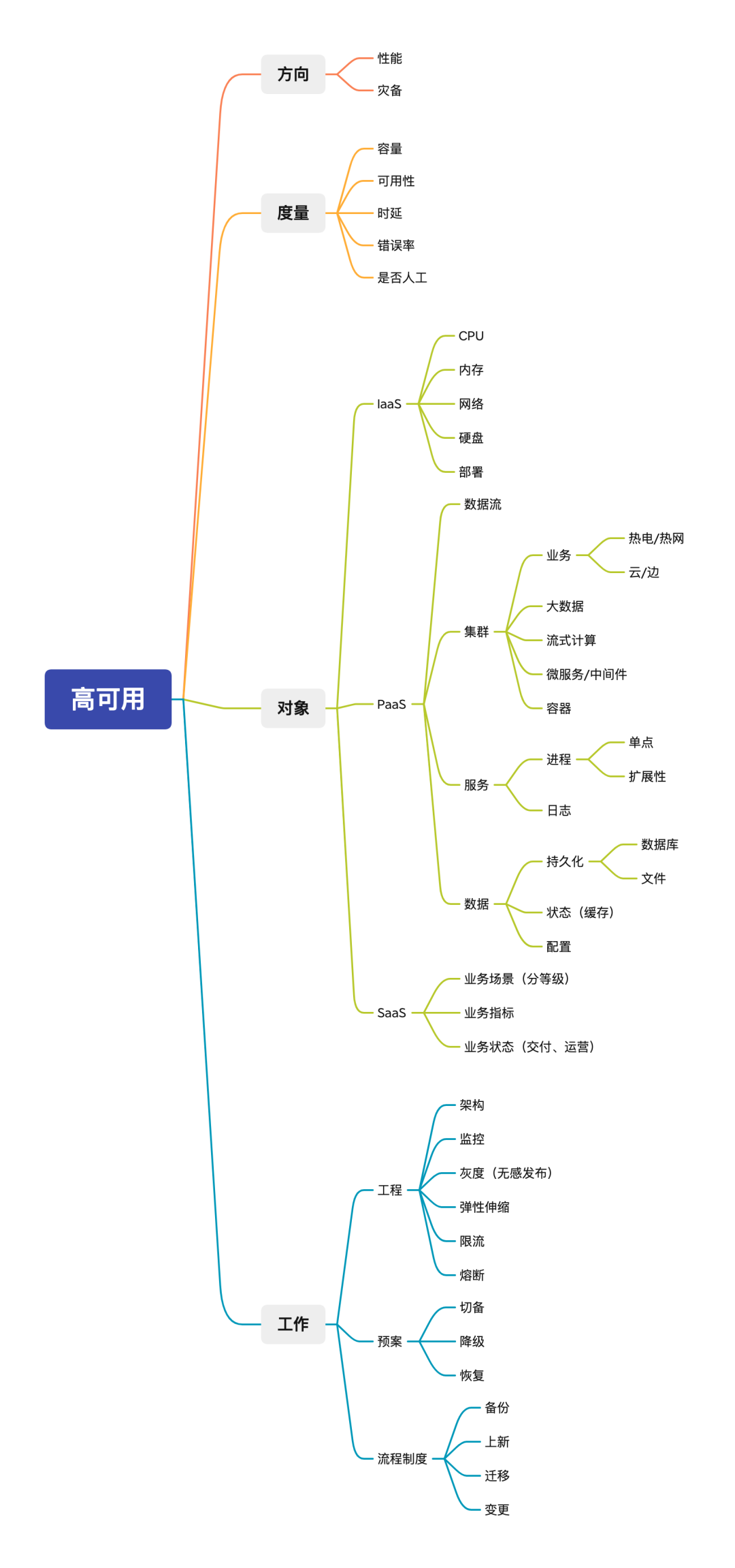 同样的,任何工作开展前,都需要基于目标进行度量,或者是定义度量的方向。通常的定义有:容量、可用性、时延、错误率、是否人工。人工这一项经常会被忽略,这是工程产品化的基石,背后意义是在问题出现时的处理速度,能否深入演进至系统自愈。