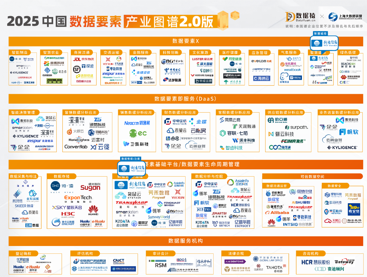 近日,数据猿正式发布《2025中国数据要素产业图谱2.0版》,创意信息凭借在数据要素领域的技术创新和成熟的行业实践,成功入选“数据管理/治理”和“数据要素×智慧城市”两大核心板块。