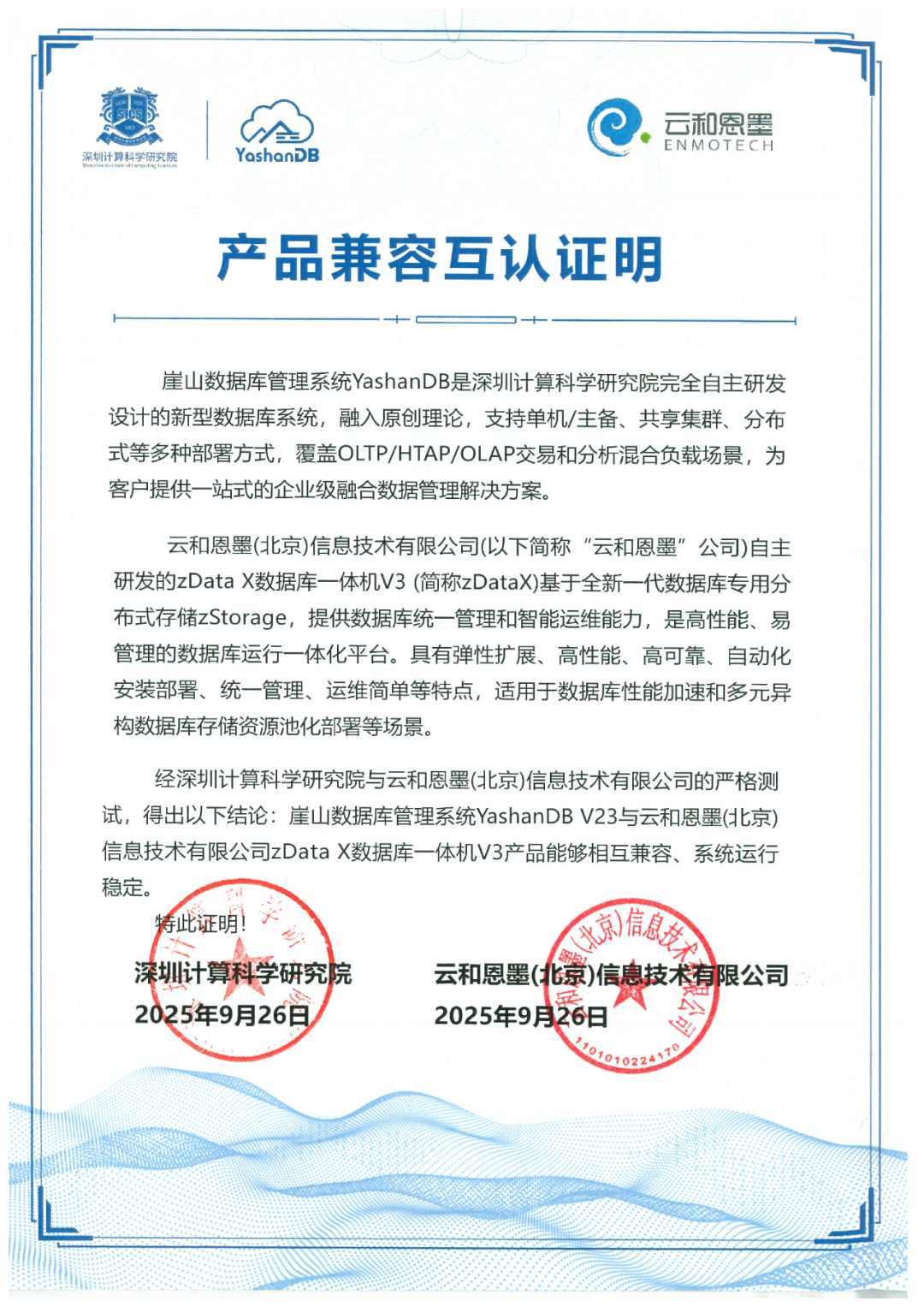 近日,云和恩墨(北京)信息技术有限公司与深圳计算科学研究院完成多元数据库一体化承载平台zData X与崖山数据库管理系统YashanDB的产品兼容互认证。经过对产品功能、性能、兼容性方面的严格测试,双方得出一致结论:zData X V3与YashanDB V23产品能够相互兼容、系统运行稳定。