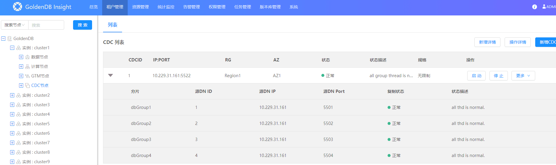 CDC 的启停、重设点位等可参考 4.3.14 管理CDC节点。