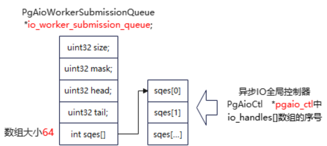 PgAioBackend从pgaio_ctl->backend_state[MyProcNumber]取,作为本进程的异步IO请求的临时存放队列。异步IO请求,也就是io句柄PgAioHandle需要先放到这里,等及攒够32个后(尽量多的积攒)就会在pgaio_io_acquire_nb函数中调用pgaio_submit_staged提交。worker的异步IO方式下使用pgaio_worker_submit函数进行提交: