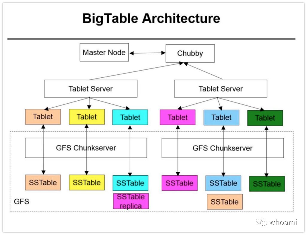 通过chubby锁,发现其他Table Server;记录redo,持久化存储于GFS,分组提交redo,提升性能。
